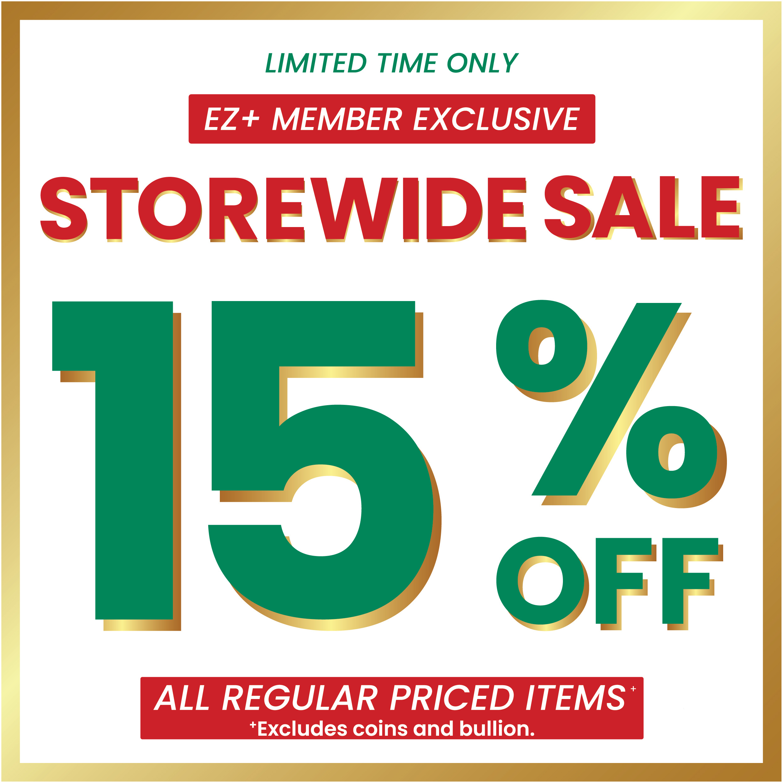 *Offer valid beginning 12/12/25 for EZ+ Members only. Cannot be combined with any other discount (tagged, promotional, or otherwise negotiated). Discount cannot be applied to coins and bullion. Discount can be cancelled, suspended, or extended at any time. Purchases made with a tax exempt ID number are ineligible for discount.
